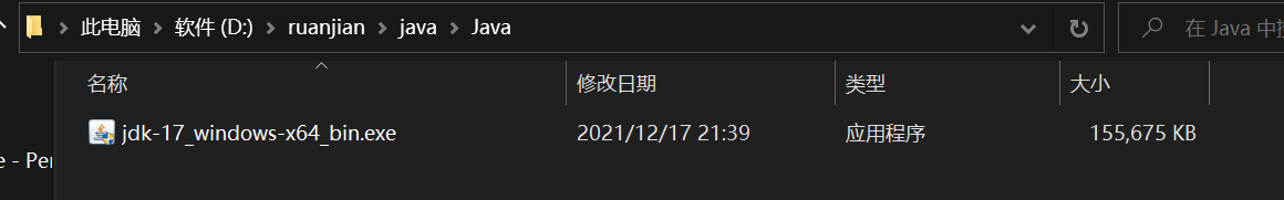 我的安装路径:D:\ruanjian\java\jdk-17.0.1(要记住这个路径)