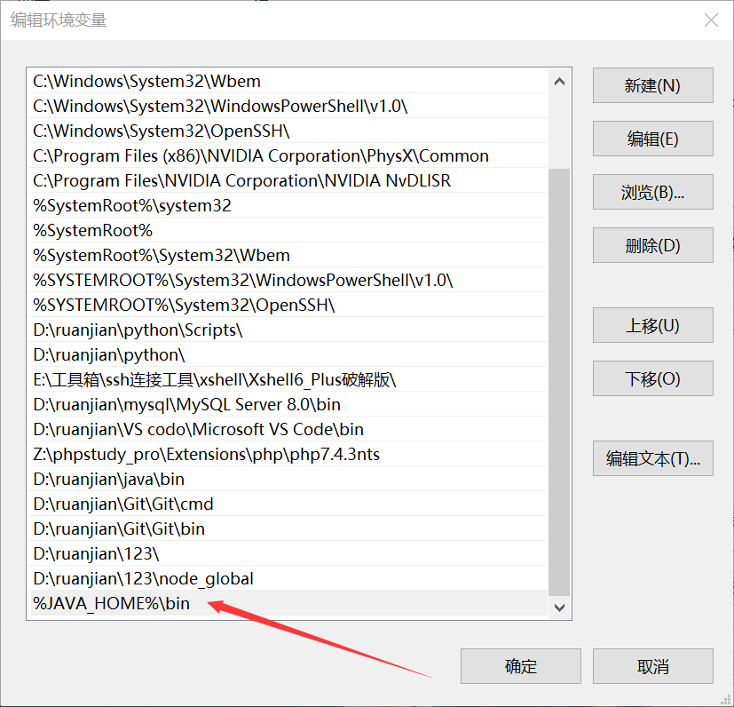 里面写入:%JAVA_HOME%\bin