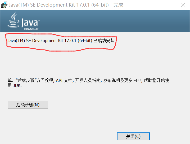 出现已成功安装,即jdk安装成功,如下图