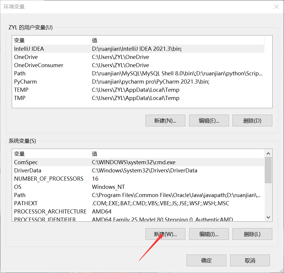 点击新建系统环境变量